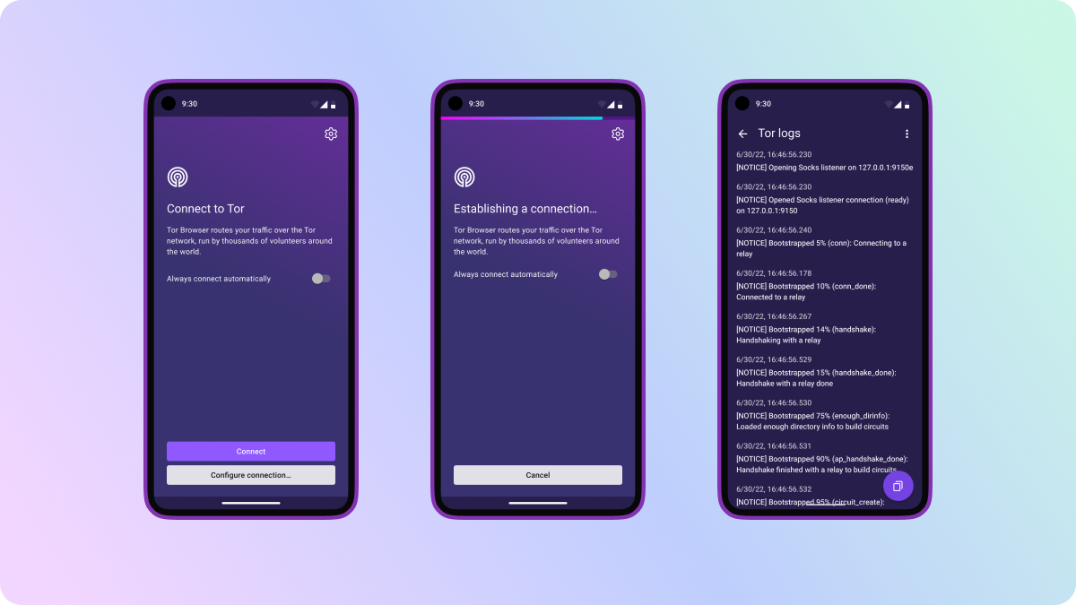 We've completely replaced Tor Browser for Android's connection screens with a new, "native" implementation. This is a welcome and necessary first step in our longer-term efforts to bring Connection Assist – a feature which can circumvent censorship of the Tor network automatically – to Android in a future major release. However, while we await Connection Assist's arrival, Tor Browser's new connection screens already offer a series of small improvements for Android users.