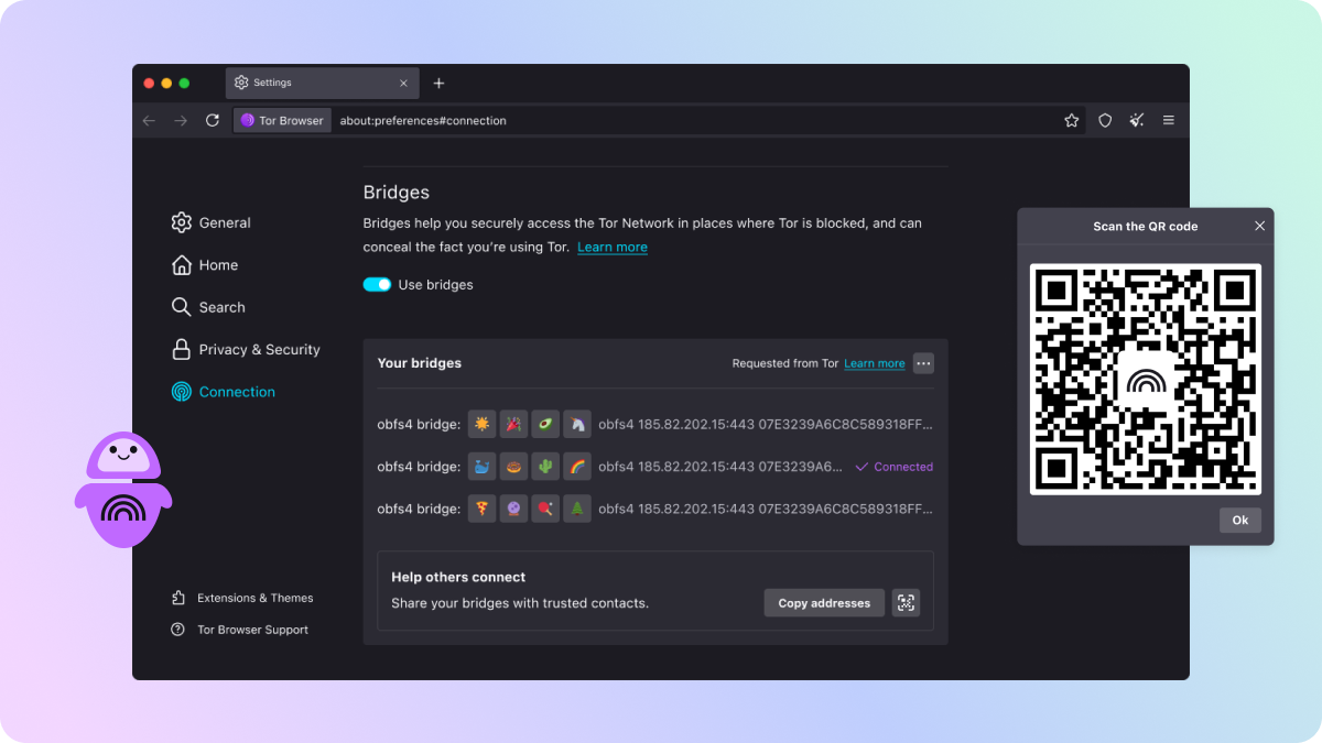 Bridge users will notice a series of refinements coming to Connection Settings in this release, aimed at helping censored users find working bridges and improve the management of multiple bridges when added.