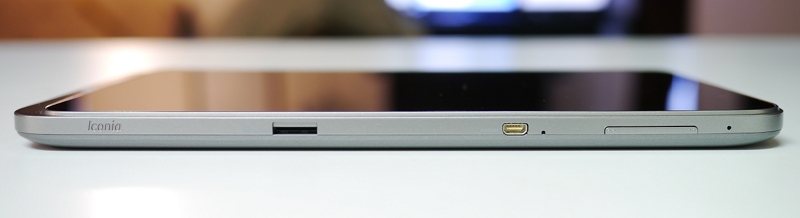 The front-facing camera is positioned at the top right of the tablet (when held in portrait mode) and sits just beside the ambient light sensor (more on that in a bit) and the centered Acer logo. A physical Windows button lies at the base of the W4 unlike the capacitive implementations we've seen on other devices.