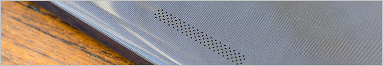 Along the bottom are the very visible dock connectors: two for hinges and one for data. They aren't particularly aesthetically pleasing, and occasionally you'll feel them when holding the tablet in portrait orientation, but they facilitate the connection of a useful accessory. Stereo speakers are included on the back of the tablet, which is fantastic for watching videos and playing games.