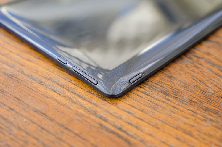 Despite a mostly plastic construction, the T100 feels remarkably solid. There is a small amount of flex in the back panel when a large amount of force is applied, which is a by-product of using plastic rather than metal. It definitely doesn't feel like the tablet is going to snap in half, and a small rim around the screen should help slightly to protect the glass in the case of a drop. Naturally, both the front and back of this glossy device are huge fingerprint magnets, but they seem quite scratch-proof.