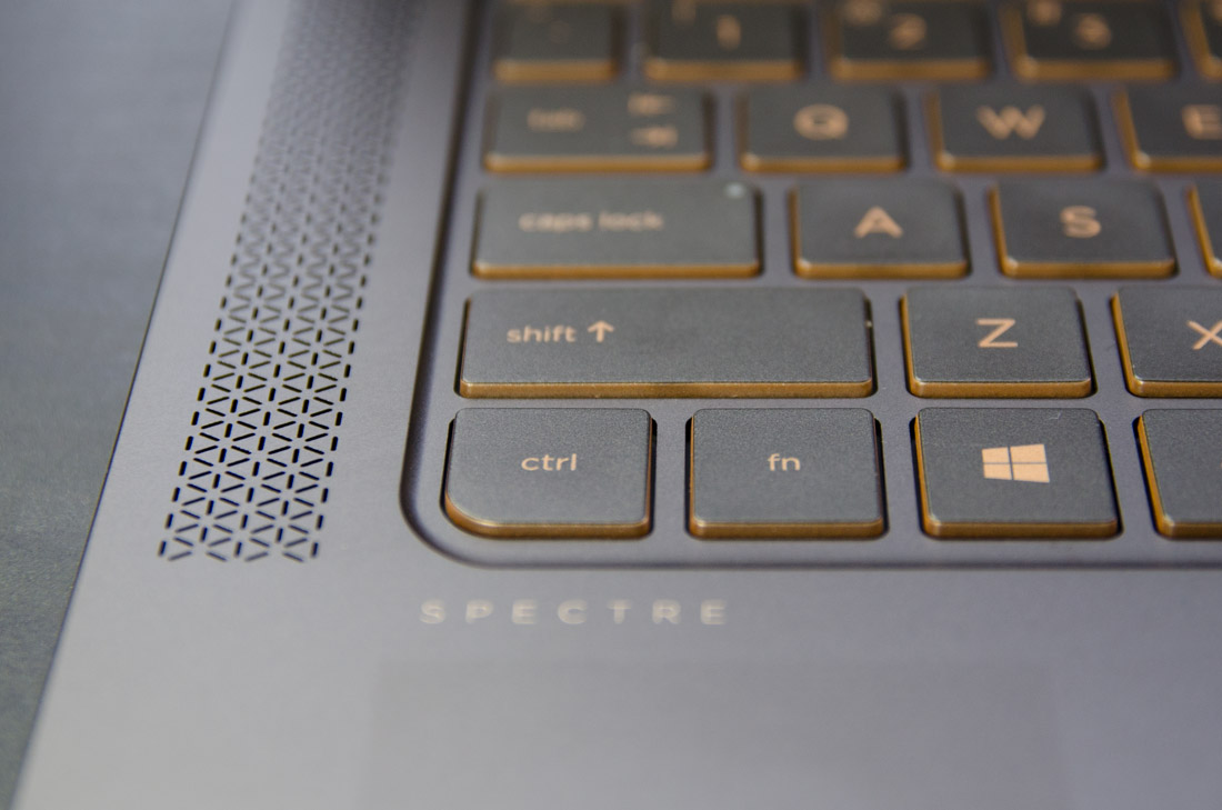 The speakers that come with the HP Spectre are branded as Bang & Olufsen, though I don't think they sound significantly better than any of the laptops I've reviewed recently. There's a serious lack of bass, and high frequencies are quite pronounced, although midtones and human dialogue sounds quite good.