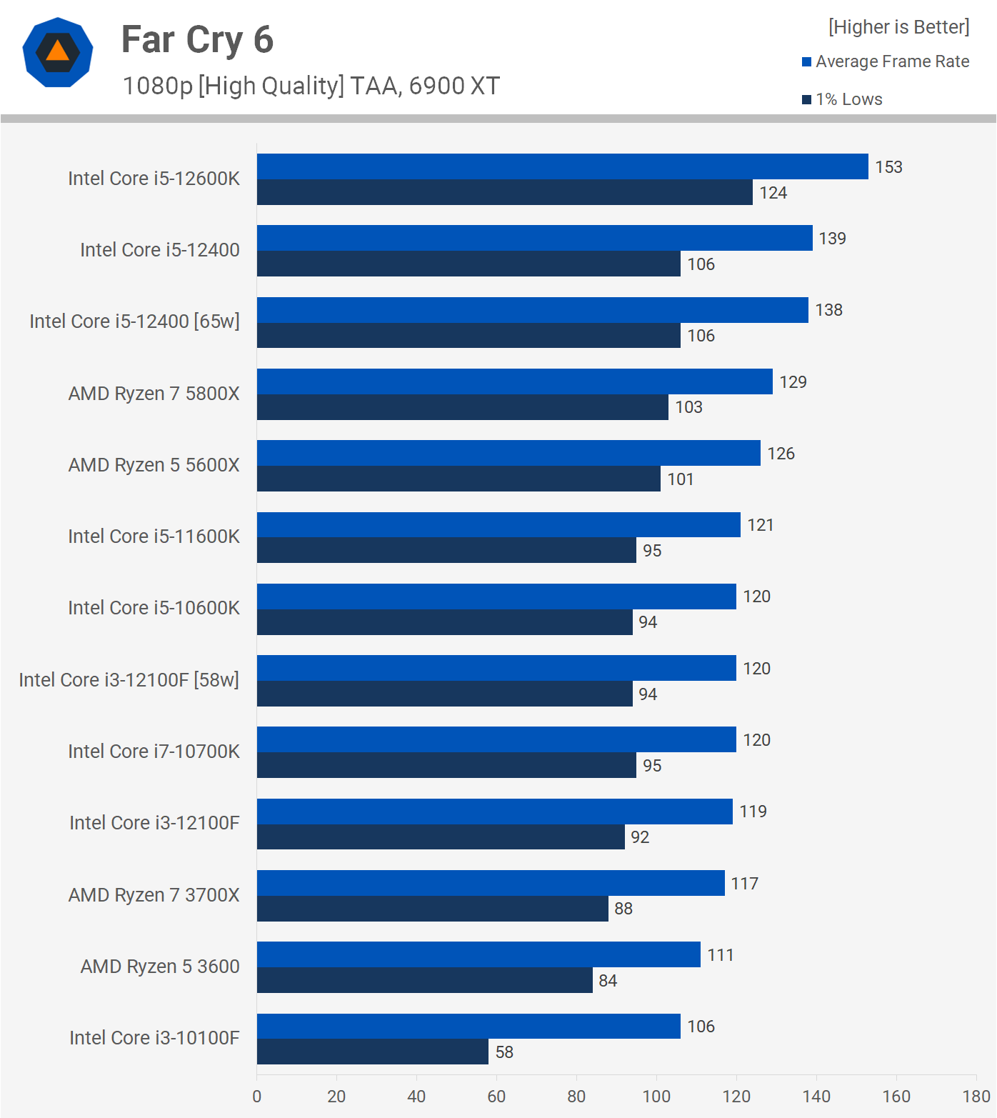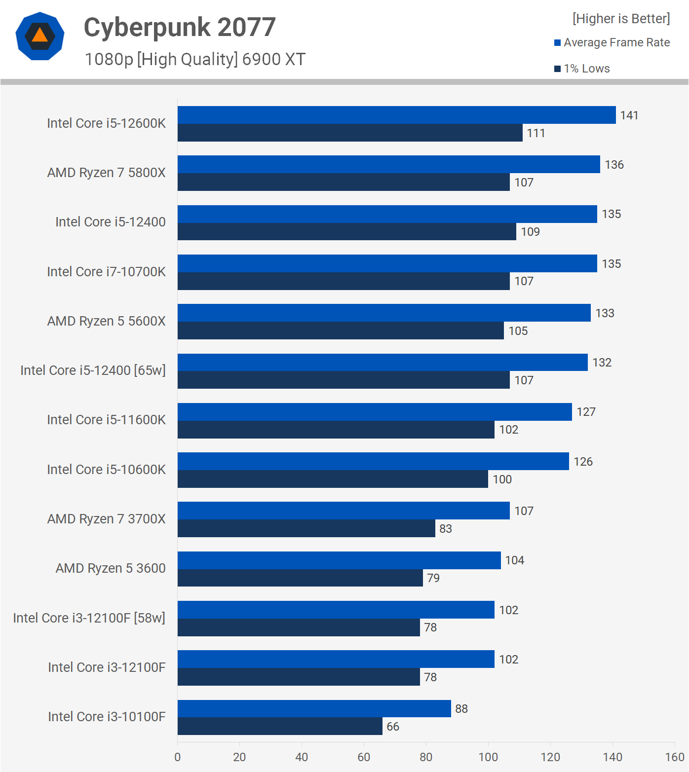 But is also means when more CPU limited in todays games, the 12100F is often comparable to parts such as the Ryzen 7 3700X and Core i5-10600K, which is remarkable.